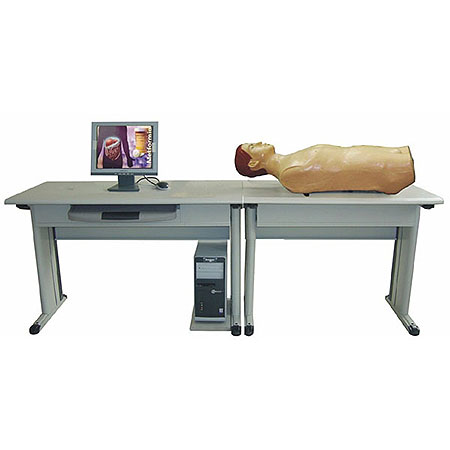 ■ 電子標準化病人能模擬43種腹部檢查體征,同機器人一樣實現(xiàn)智能化控制,真實地模仿人體腹式呼吸和腹式呼吸時肝、膽囊、脾在膈肌下的運動,創(chuàng)造了一位智能化的仿真病人,供學生進行反復地觸診訓練。